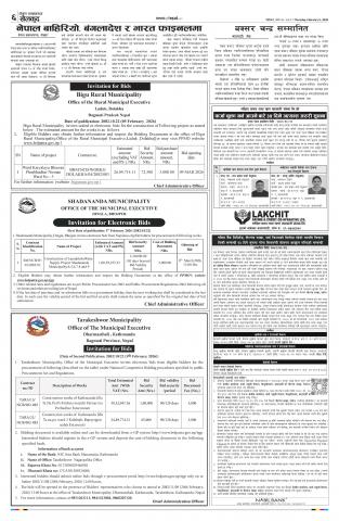 » लमुखोला खानेपानी आयोजना षनपा ४, ५, ६, ७, ८ र ९ निर्माण गर्न बोलपत्र आह्वान सम्बन्धी सूचना !!!