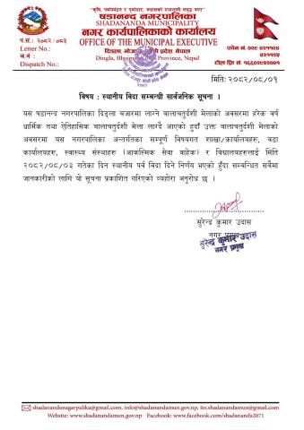 » स्थानीय पर्व विदा सम्बन्धी सार्वजनिक सूचना !