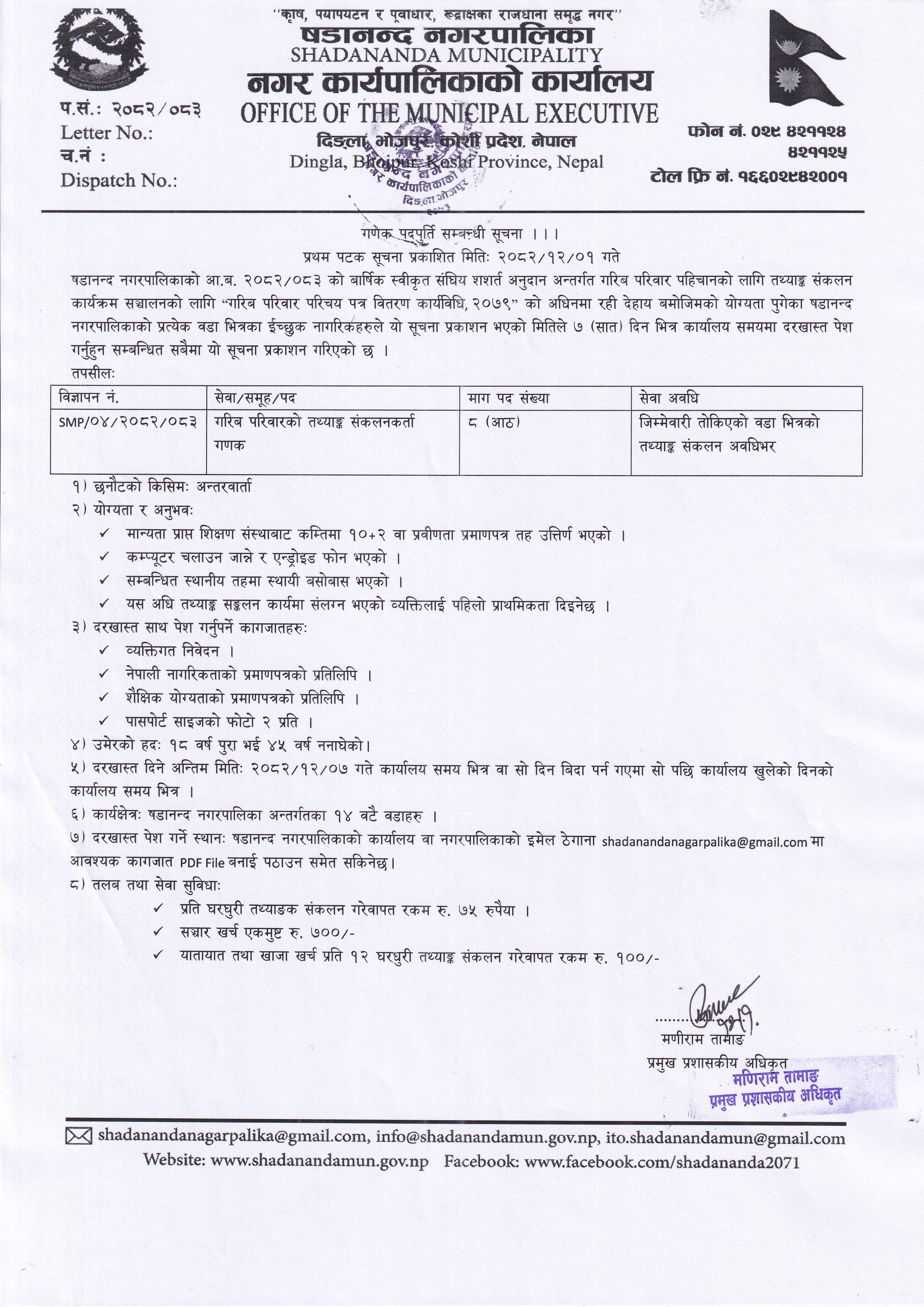 info@shadanandamun.gov.np, shadanandanagarpalika@gmail.com, ito.shadanandamun@gmail.com