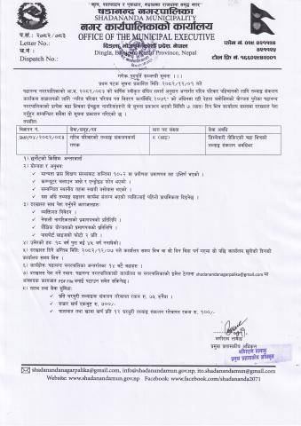 आ.व. २०७७/७८ को लागि षडानन्द नगरपालिकाको नागरिक वडापत्र