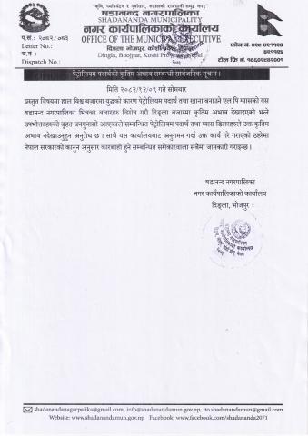 आ.व. २०७९/८० को लागि षडानन्द नगरपालिकाको नागरिक वडापत्र