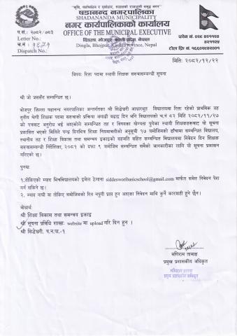 आ.व. २०७६/०७७ को लागि यस न.पा. अन्तर्गत सौर्य सडक बत्ती उपकरण खरिद तथा जडान कार्य सम्बन्धि शिलबन्दी बोल पत्र आह्वान बारे सूचना !!!
